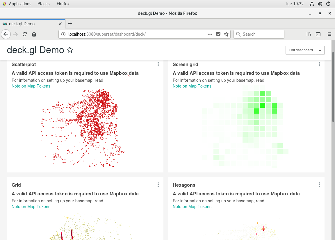 (venv) [iniciam@centos7 ~]$ superset load_examples Loading examples into Creating default CSS templates Loading energy related dataset Creating table [wb_health_population] reference 2019-07-30 19:15:10,374:INFO:root:Creating database reference 2019-07-30 19:15:10,488:INFO:root:Database.get_sqla_engine(). Masked URL: sqlite:////home/iniciam/.superset/superset.db Loading [World Bank's Health Nutrition and Population Stats] Creating table [wb_health_population] reference 2019-07-30 19:15:22,900:INFO:root:Creating database reference Creating slices Creating a World's Health Bank dashboard Loading [Birth names] Done loading table! Creating table [birth_names] reference 2019-07-30 19:15:25,959:INFO:root:Creating database reference Creating some slices Creating a dashboard Loading [Random time series data] Done loading table! Creating table [random_time_series] reference 2019-07-30 19:15:27,304:INFO:root:Creating database reference Creating a slice Loading [Random long/lat data] Done loading table! Creating table reference 2019-07-30 19:15:48,727:INFO:root:Creating database reference Creating a slice Loading [Country Map data] Done loading table! Creating table reference 2019-07-30 19:15:48,984:INFO:root:Creating database reference Creating a slice Loading [Multiformat time series] Done loading table! Creating table [multiformat_time_series] reference 2019-07-30 19:15:49,298:INFO:root:Creating database reference Creating Heatmap charts Loading [Paris GeoJson] Creating table paris_iris_mapping reference 2019-07-30 19:15:51,514:INFO:root:Creating database reference Loading [San Francisco population polygons] Creating table sf_population_polygons reference 2019-07-30 19:15:51,822:INFO:root:Creating database reference Loading [Flights data] 2019-07-30 19:15:56,600:INFO:root:Creating database reference Done loading table! Loading [BART lines] Creating table bart_lines reference 2019-07-30 19:15:56,901:INFO:root:Creating database reference Loading [Multi Line] Creating table [wb_health_population] reference 2019-07-30 19:16:11,525:INFO:root:Creating database reference Creating slices Creating a World's Health Bank dashboard Done loading table! Creating table [birth_names] reference 2019-07-30 19:16:14,495:INFO:root:Creating database reference Creating some slices Creating a dashboard Loading [Misc Charts] dashboard Creating the dashboard Loading DECK.gl demo Loading deck.gl dashboard Creating Scatterplot slice Creating Screen Grid slice Creating Hex slice Creating Grid slice Creating Polygon slice Creating Arc slice Creating Path slice Creating a dashboard