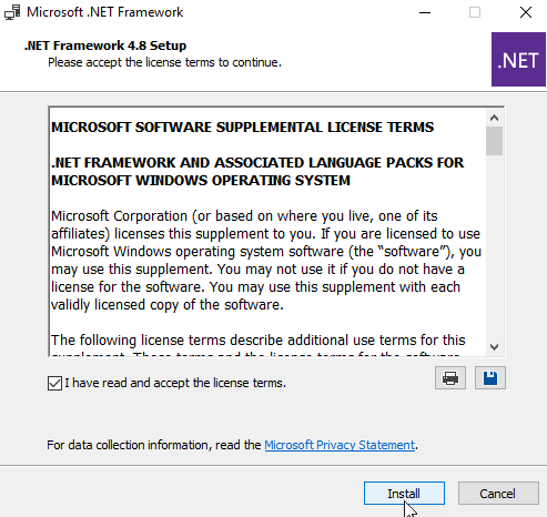 There are a few pre-requisites before you can install Resource Monitoring Tool (RMT) Master server, check out the details here, one of the most important one is to install .NET Framework 4.6.2 or newer. I installed version 4.8.