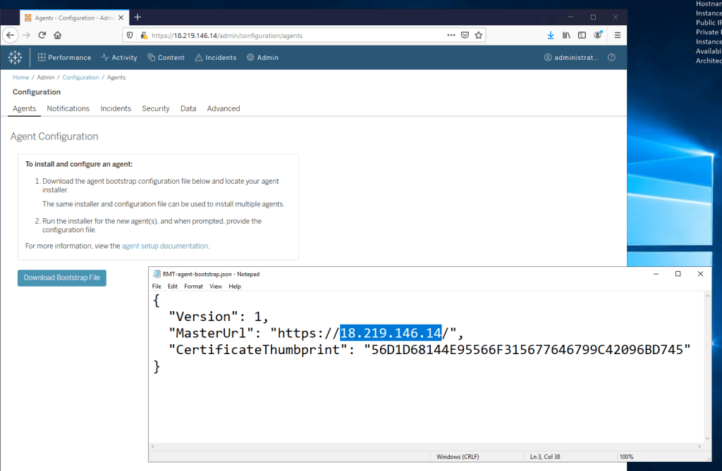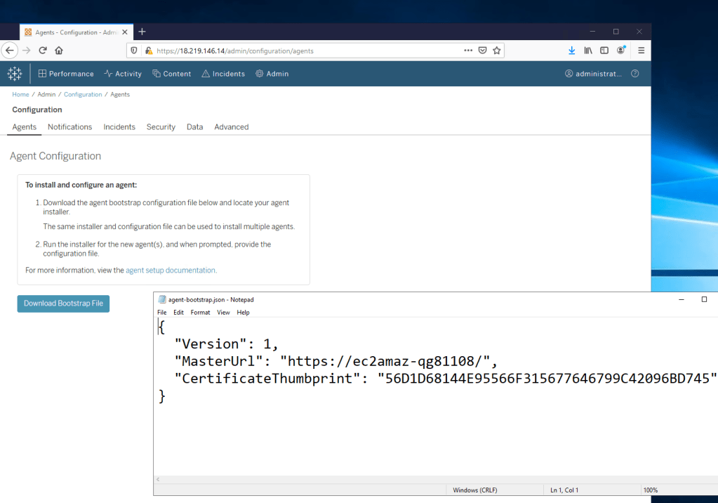 Click Agents menu and “Download Bootstrap File” button.