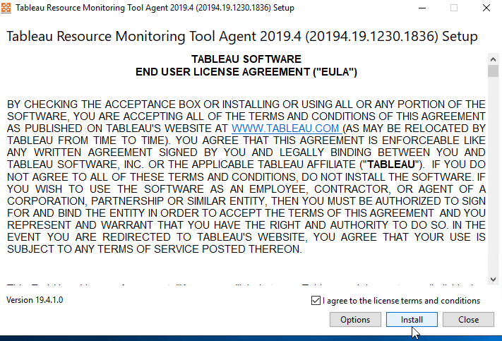 Then you need to install RMT Agent in all Tableau Server that you want to monitor their performance in a near real-time manner. I’m following tableau documentation here and share all the screenshots below so you know what to expect before trying it yourself. If you have a distributed Tableau server cluster with many nodes, then you need to install RMT Agent one by one in all the nodes.