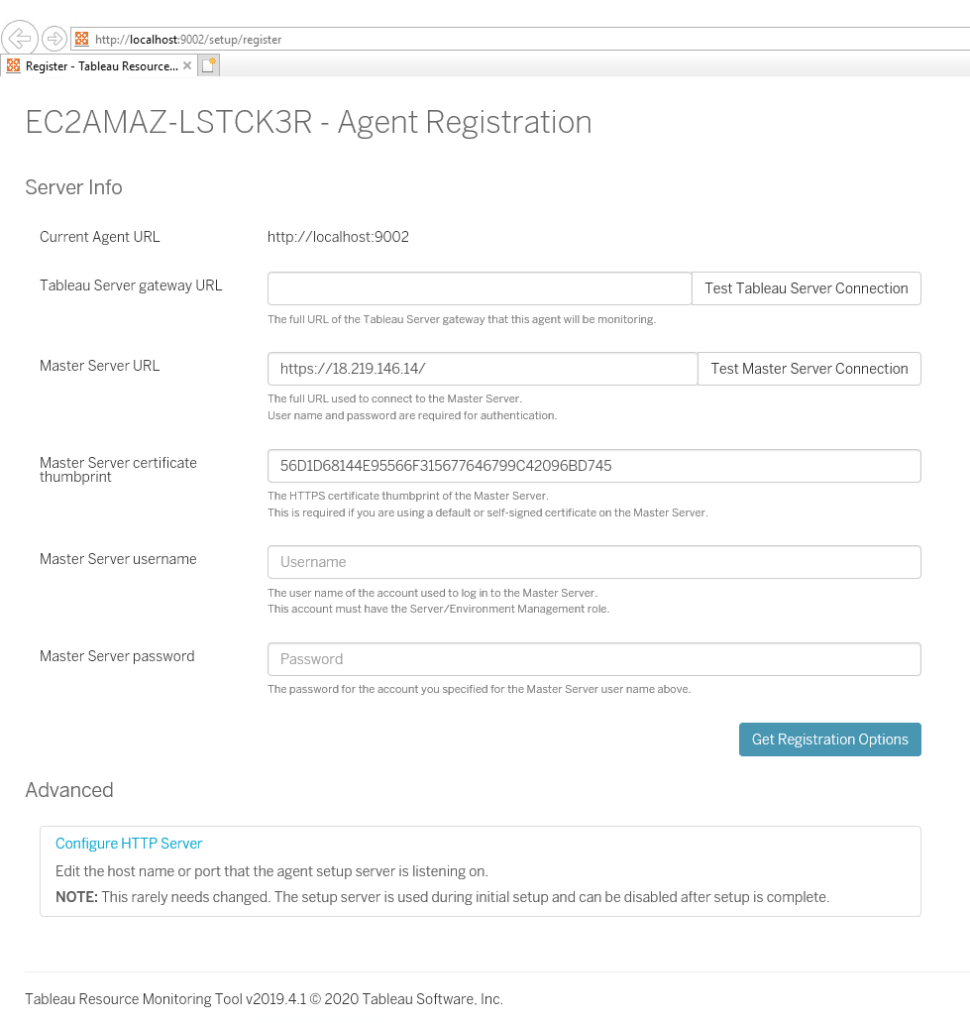 Tableau Server Management Add-on – Resource Monitoring Tool has 2 components. RMT Master & RMT Agent. First, you need to install the RMT Master Server, install guide available here.